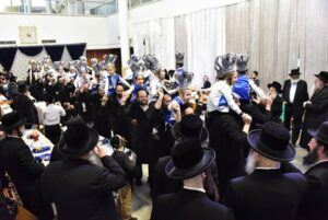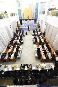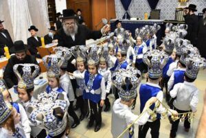 The celebration was held in the heichel of the Beis Medrash HaGadol in Kiryat Nadvorna, with the participation of the Nadvorna Rebbe and the Modzitzer Rebbe, whose grandson is in the class.