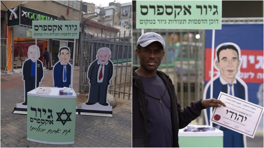 הטרלה נאה: דוכן ה"גיור אקספרס" הונח היום בתל אביב על ידי ארגון חותם. בדוכן "גיירו" הרכב הדיינים – כהנא, קריב וליברמן את מסתנני דרום ת"א, בגיור אקספרס ע"פ מתוה הגיור החדש אותו מקדם השר כהנא, כל מסתנן קיבל באופן מהיר תעודת גיור המאשרת כי הם גויירו ב'גיורי כהנא'. pic.twitter.com/CB0iMfxU96