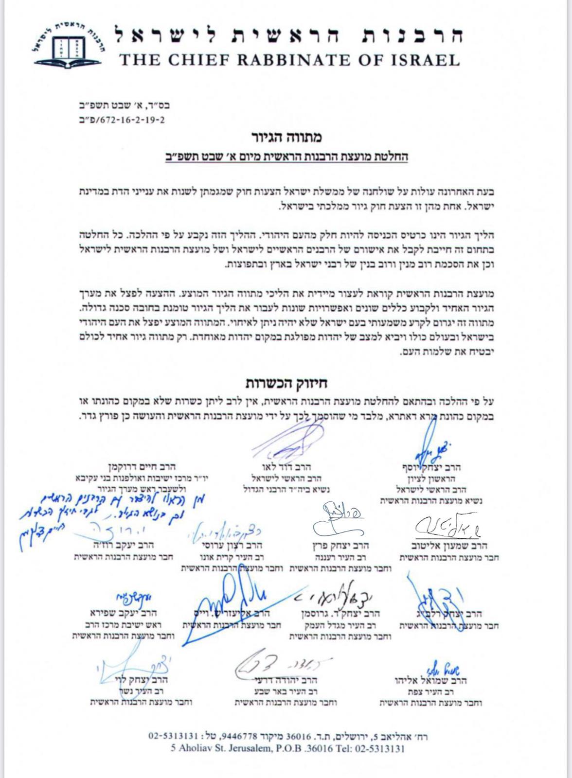 Following the meeting, the Moetzet issued a statement, which was also signed by HaRav Druckman, saying: “The Moetzet HaRabbanut calls to immediately end the proposed giyur reform. The proposal to split the giyur system and institute different rules and options to undergo giyur poses a great danger. This plan will lead to a significant rift in the nation which will be irreparable and will divide the Jewish nation.”