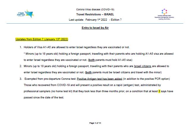 Now, unvaccinated foreign children will be permitted to enter Israel, provided that they are travelling together with BOTH Israeli parents.