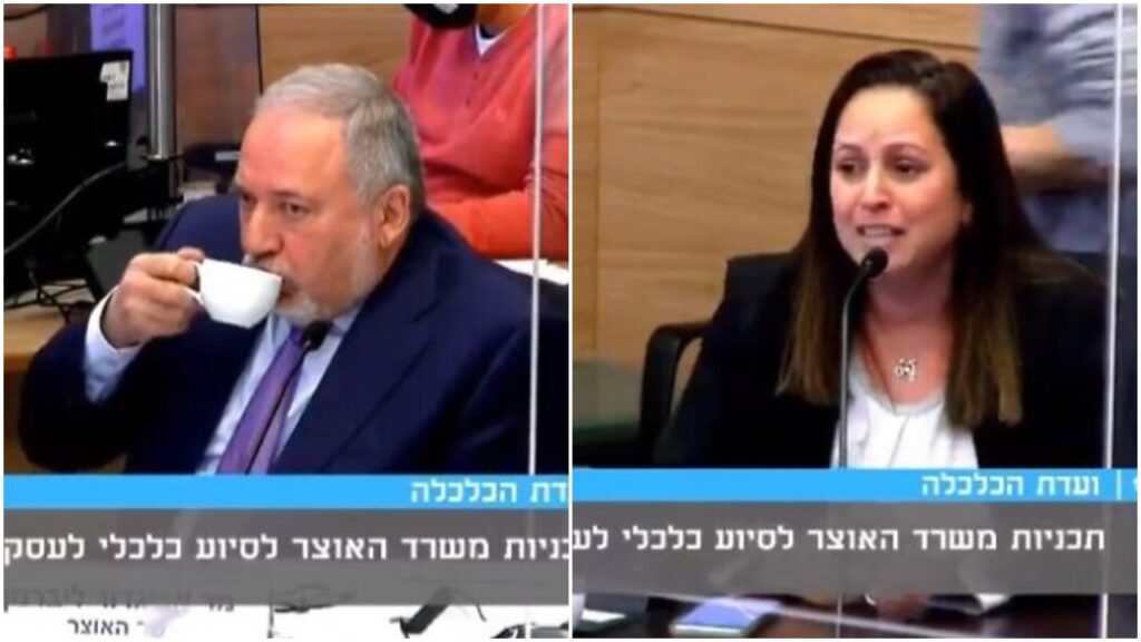 Avivi then tearfully addressed Lieberman directly as he apathetically sat there drinking his tea, begging him for assistance, saying that independent teachers were out of work for months during the multiple school closures.