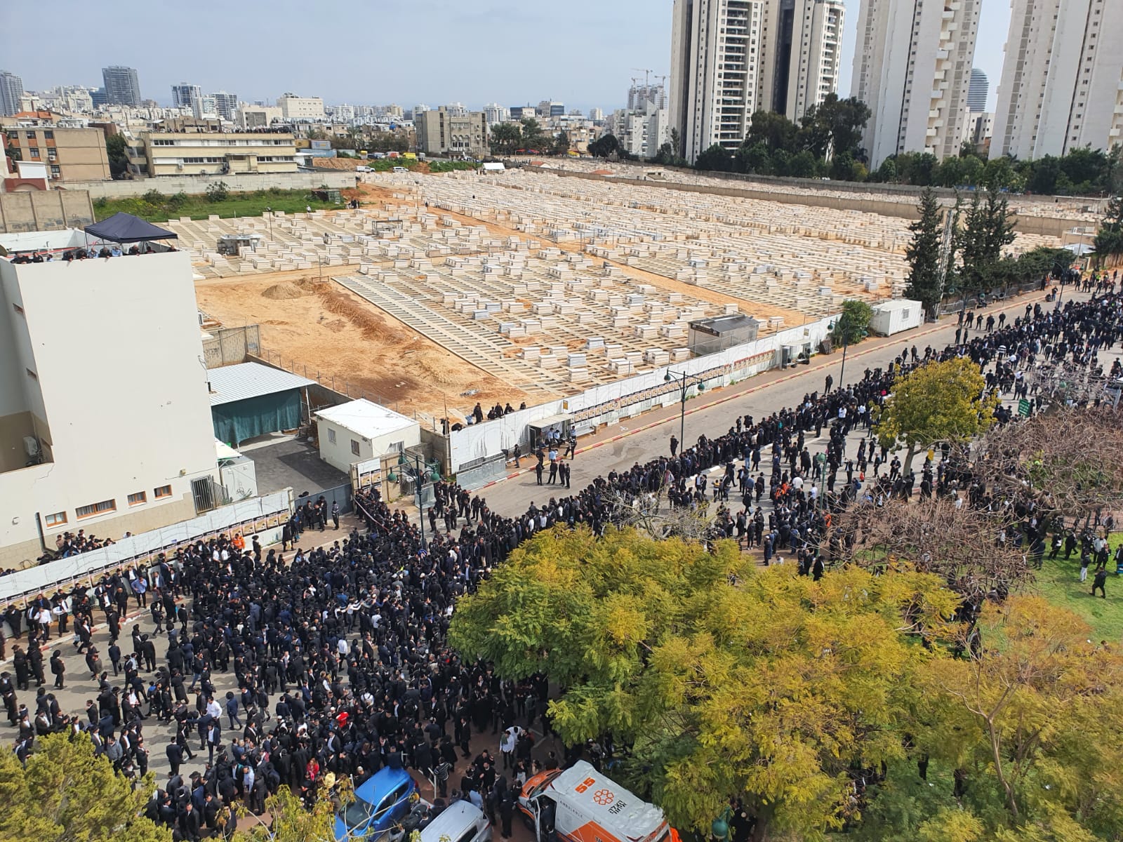 Statement from Magen David Adom: The funeral procession for R’ Chaim Kanievsky, attended by hundreds of thousands of people, ended a short time ago with no serious incidents. Magen David Adom teams who had been on standby since the early hours of the morning along the funeral route and in the cemetery, treated a few dozen patients who fainted, felt weak or had sustained minor injuries. 15 of whom were conveyed to hospitals, including Maaynei Hayeshua, Wolfson, Beilinson, and Sheba Tel Hashomer.