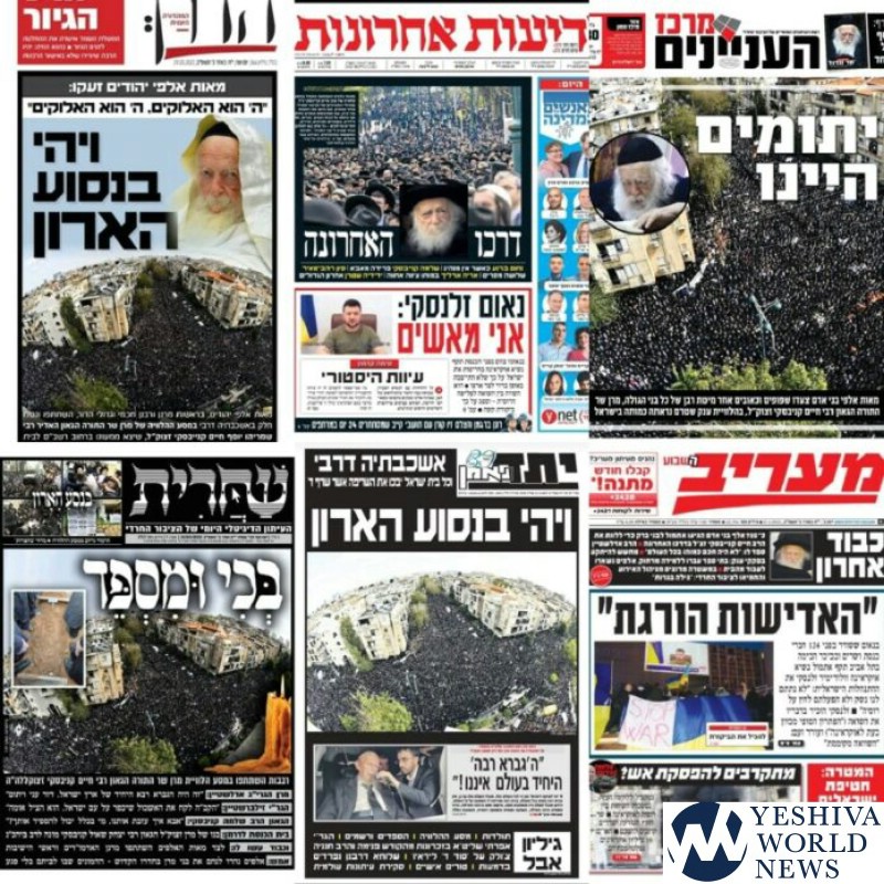 The levaya of HaRav Chaim Kanievsky zt”l was the top story on nearly every newspaper Israel on Monday morning, regardless of whether the paper was geared toward the religious community.