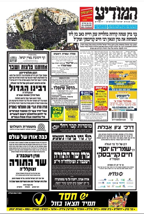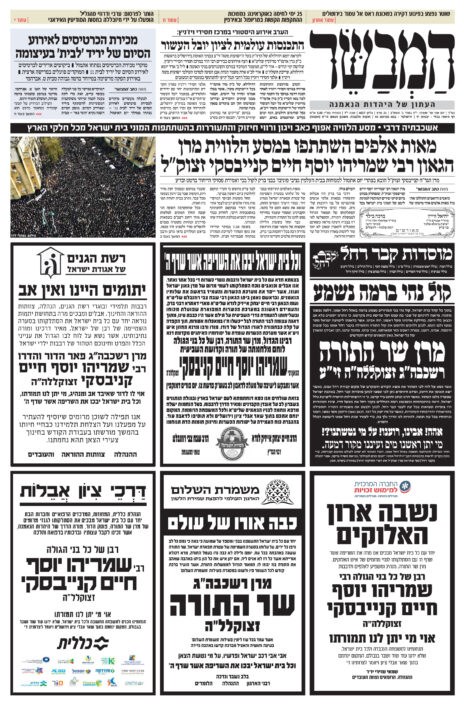 Ha’Mevaser devoted nearly their entire front page to the levaya, with just one article noting a Vizhnitz 10-year anniversary celebration.