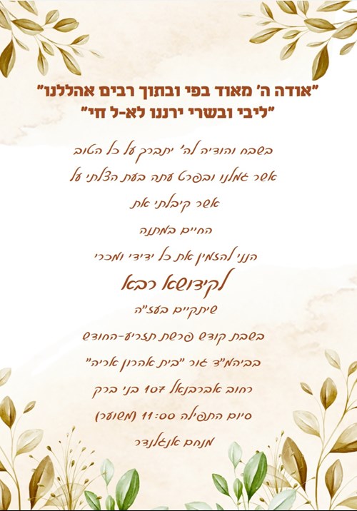 On Shabbos, Menachem sponsored a large Kiddush in the Gerrer shteibel on Rechov Abarbanel in Bnei Brak in gratitude to Hashem for his miraculous escape.