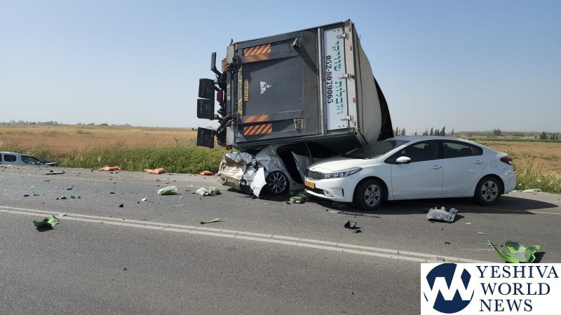 A severe car accident occurred on Tuesday afternoon when a truck somehow overturned on several cars in the Be’er Tuvia Regional District in southern Israel, killing three people and injuring six, one critically.