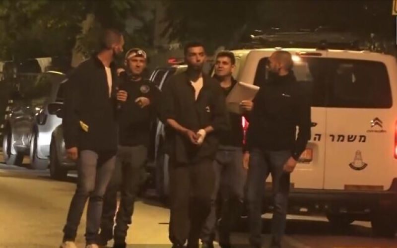 Under heavy guard and with their feets and hands handcuffed, the terrorists were brought to the murder scene during the pre-dawn hours of Monday morning. Border Police officers closed off the [empty] streets, and police investigators and Shin Bet operatives accompanied the terrorists as they repeated the murderous steps they took on Thursday night in front of the cameras of the Central District Police.