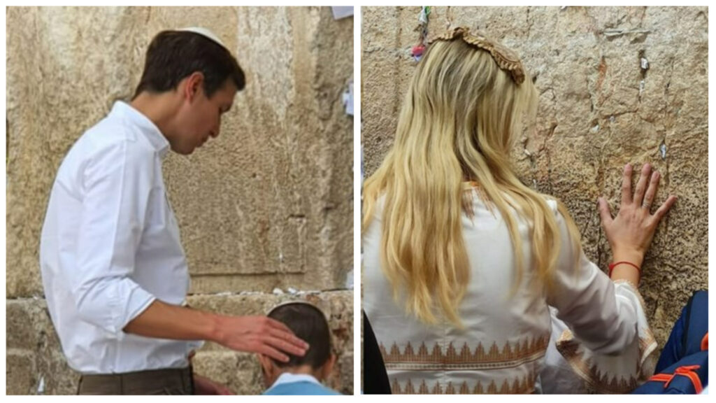 Ivanka Trump and Jared Kushner were seen visiting the Kosel on Wednesday with their children.