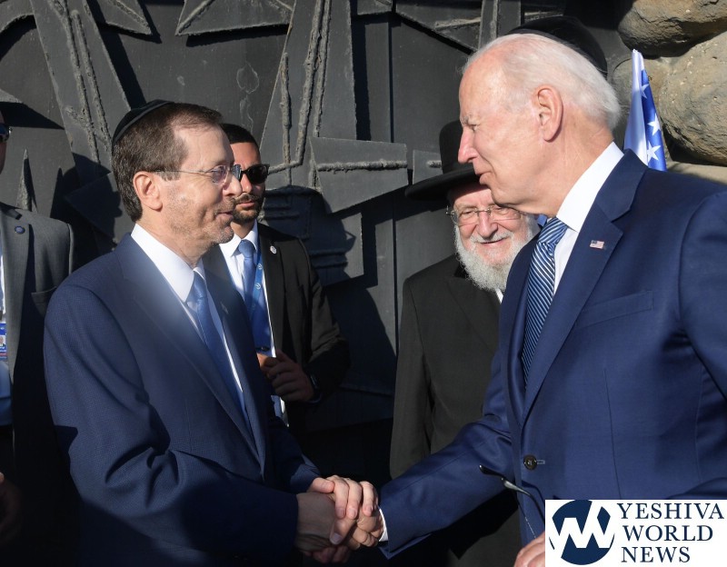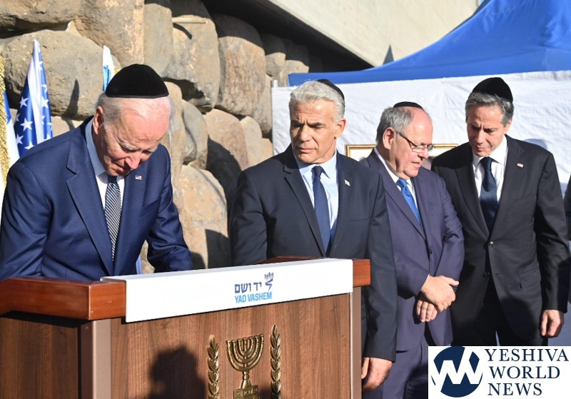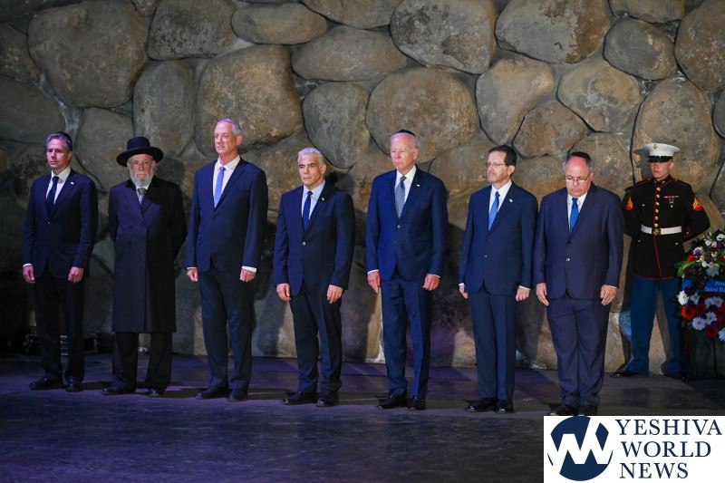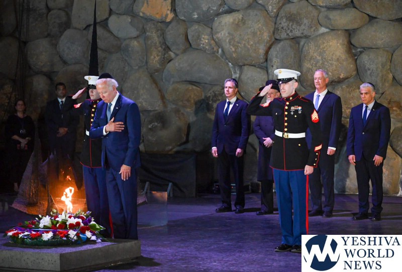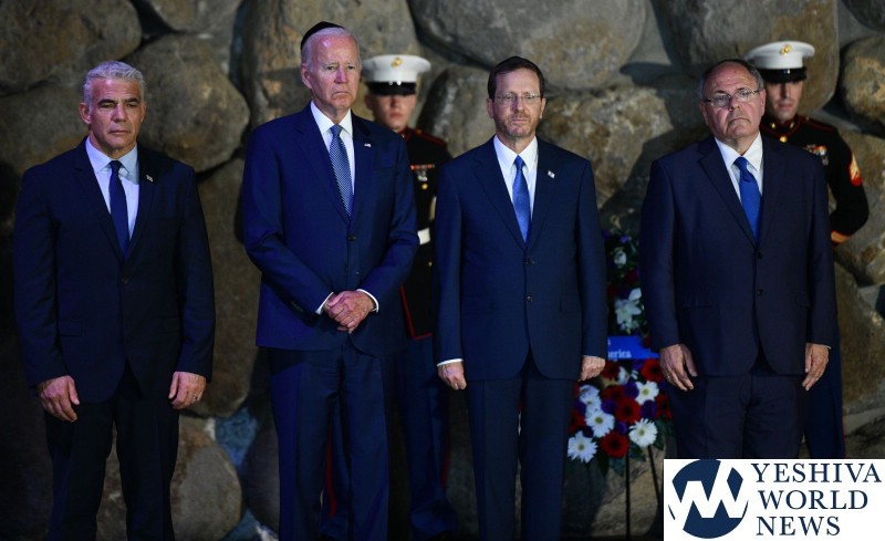 Biden was joined by Prime Minister Yair Lapid and Defense Minister Benny Gantz, both of whom are children of Holocaust survivors.