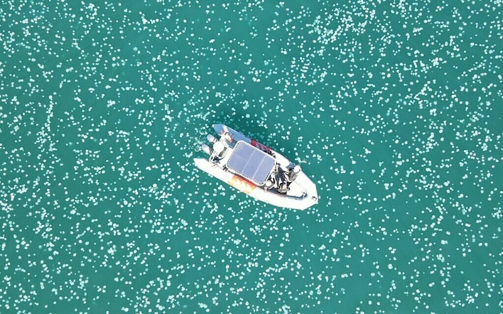 The massive swarm was first spotted by Israel Nature and Parks Authority (INPA) Director-General Raya Shuraki and the agency’s Marine Enforcement Unit.