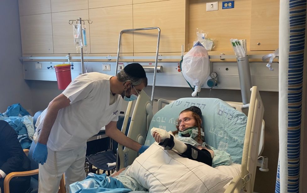 Baruch, a 20-year-old chasan, was shot in the neck and hand and was evacuated by Magen David Adom to Hadassah Har Hotzofim, where he was treated by a multidisciplinary team of trauma and emergency medicine specialists, intensive care specialists, plastic surgeons, neurosurgeons, orthopedists, anesthesiologists, operating room staff, the staff of the angiography, EEG and hand surgery departments, occupational and physical therapists, and social workers.
