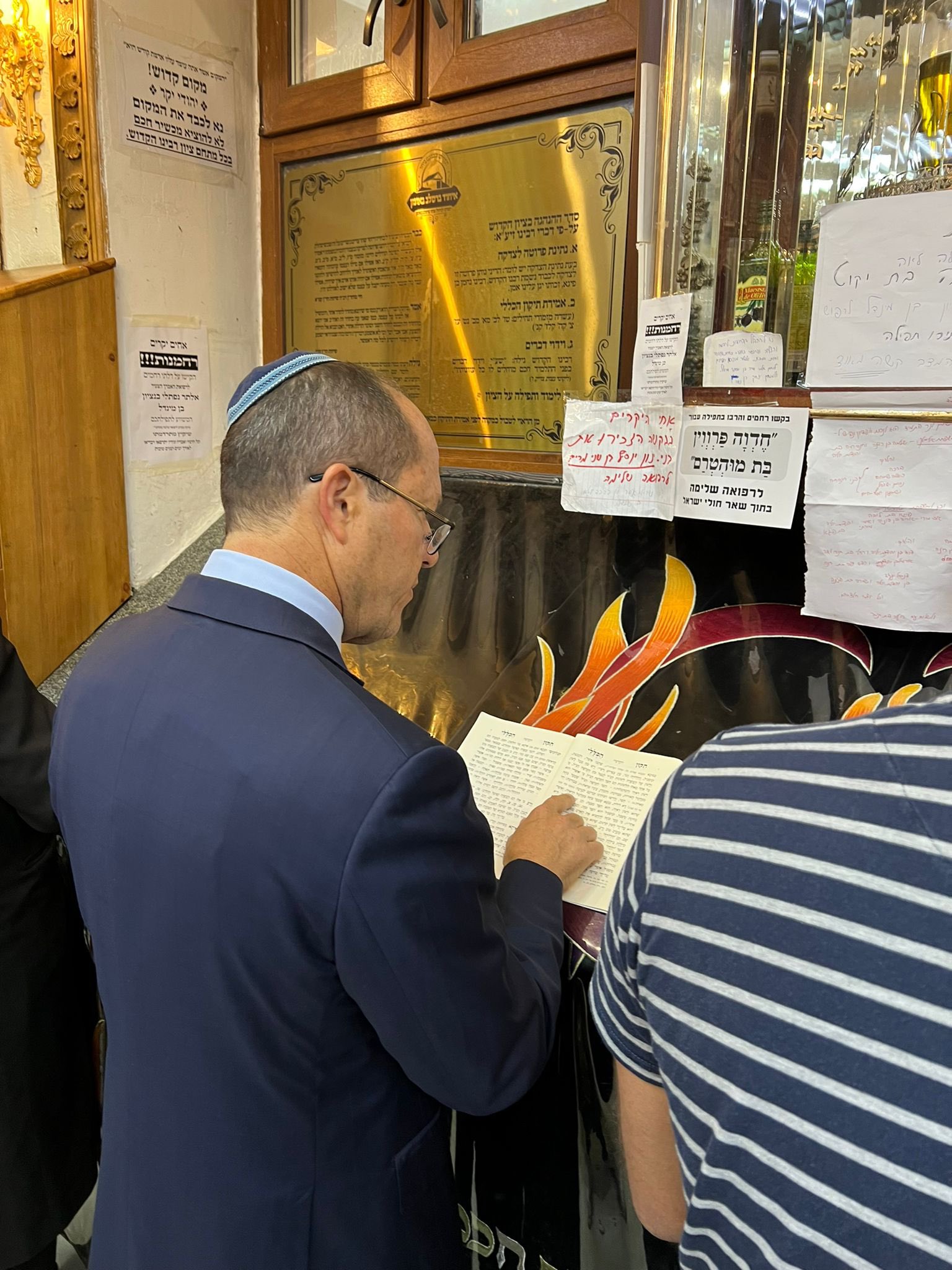 Barkat’s visit to Uman was part of a trip he made to Ukraine on the invitation of Kyiv Rav Rabbi Moshe Asman in order to be mechazeik the Jewish kehillos there. The former Jerusalem mayor met with Rabbanim and Breslover askanim and toured several bombed cities.