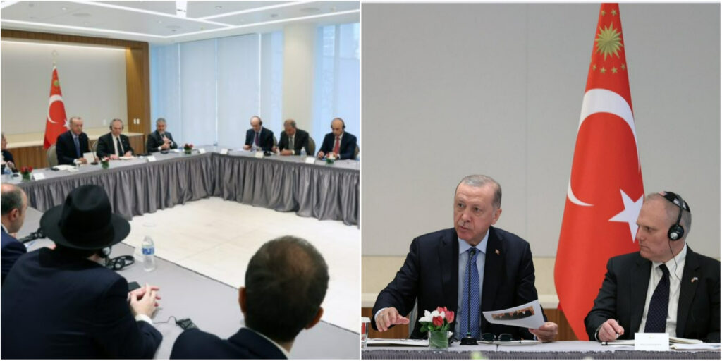 Erdogan, who is in New York for the United Nations General Assembly, met with American and Turkish Jewish leaders in a meeting arranged by the Turkish embassy and the Conference of Presidents of Major American Jewish Organizations.