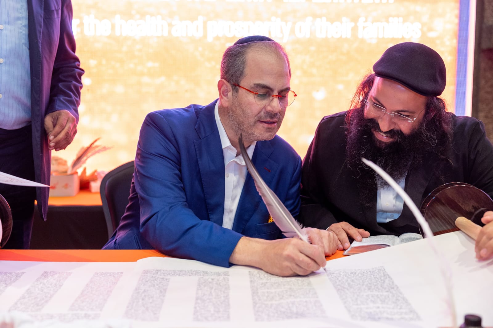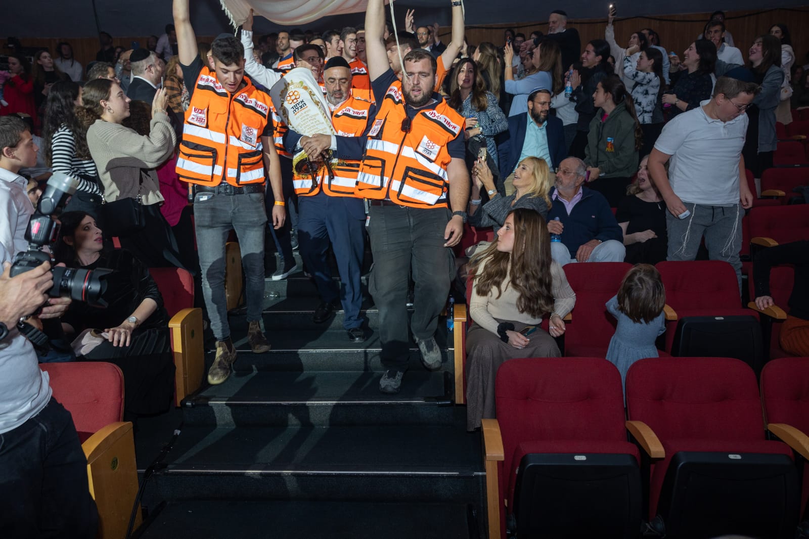 The event was a big success. In addition to the great show and sold-out tickets sale which will go towards supporting the EMS organization’s lifesaving activities, numerous donation pledges were made at the reception prior to the event, including a $75,000 ATV, which will be used to respond to emergencies in difficult terrain. Another notable donation was that of a Torah scroll which was donated to United Hatzalah and was finished by members of the audience just prior to the event. Toward the end of the concert, the Torah was later danced onto the stage by volunteers of the organization together with audience members in a joyful procession against the backdrop of Avraham Fried’s masterful singing.