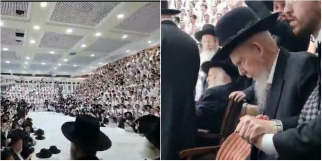 In an incredible display of kavod haTorah, thousands of bochurim and Bnei Torah dance and sing for the elderly Gadol as he enters the room.