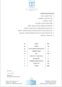 The Central Elections Committee published the final tally of votes on Thursday evening, with the final count giving the right-wing bloc 64 seats after the Yisrael Beiteinu party gained one seat at the loss of UTJ, which decreased from eight seats to seven.