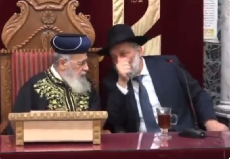 In the course of HaGaon HaRav Yitzchak Yosef’s weekly shiur on Motzei Shabbos, Shas chairman Aryeh Deri was caught on video whispering to the Chief Rabbi.