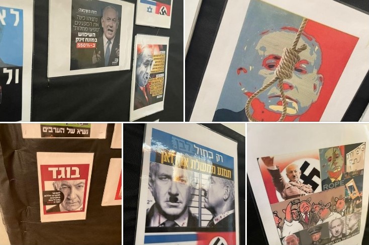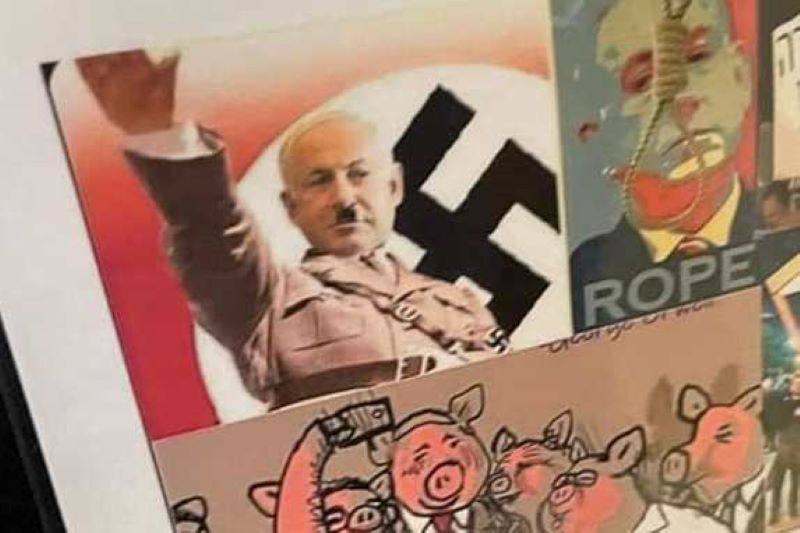 A teacher at the Yahalom elementary school in Ramat Gan hung shockingly inciteful photos of Prime Minister-designate Binyamin Netanyahu in front of a noose, dressed as Hitler, and depicted as a pig in the hallway of the school.