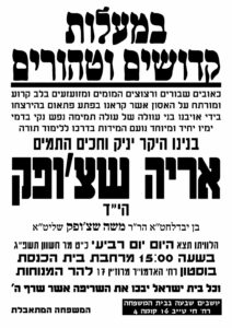 The public is asked to daven for Aryeh’s friend, who was standing next to him and was critically injured. He is sedated and ventilated in the ICU at Shaarei Tzedek Hospital and doctors said on Wednesday afternoon that his life is still in danger – a refuah sheleimah l’ Elchanan ben Livnat, as well as for a seriously injured man of about 60 – Chaim Nochum ben Feiga Rivka b’toch shaar cholei Yisrael.