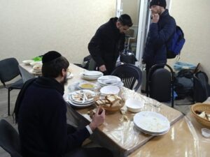 “They told us about the group of 150 frum Jews stuck at the airport without food. For Chabad of Moldova, it went without saying that we would assist the group. Rav Gotzel and Rav Axelrod – who haven’t been feeling well for the past few days and could barely get out of bed – despite the late hour and freezing cold, got dressed and ran to the kehilla’s warehouses and emptied the shelves of everything possible in order to satisfy the hungry group.”