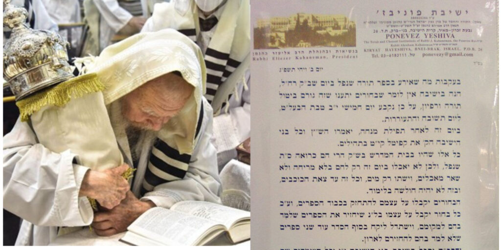 In the wake of the fall of a Sefer Torah on Shabbos morning in Yeshivas Ponevezh, the Roshei Yeshivah established a day of teshuvah and hissorerus on Thursday as outlined in a letter published in the yeshivah on Tuesday morning.