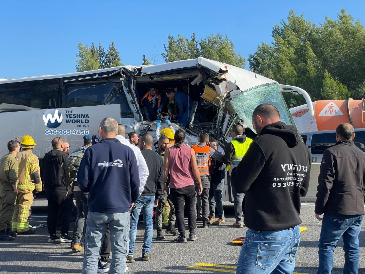 A 10-year-old girl was seriously injured and 39 others lightly hurt when a child transport bus collided with a truck on Route 1 between Yerushalayim and Tel Aviv. The majority of those injured were children riding in the bus, who were being transported – along with a number of parents – on a school trip.