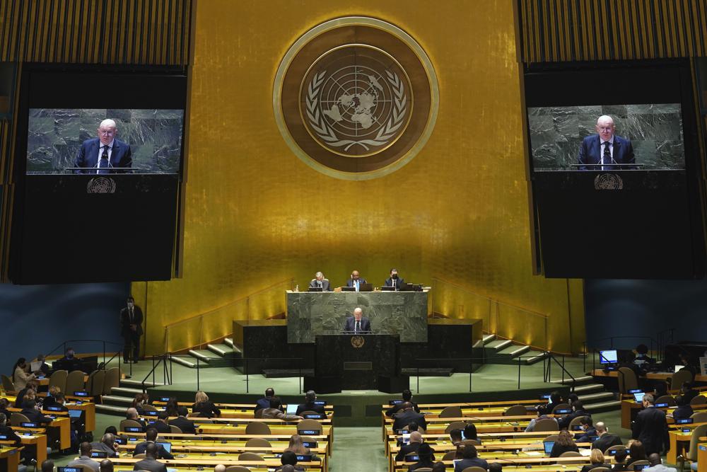 Israel’s U.N. ambassador accused the Palestinians on Wednesday of stabbing a knife into any chance for reconciliation by seeking an advisory opinion from the U.N.’s highest court on Israel’s decades-old West Bank presence — and the Palestinian U.N. envoy accused Israel’s new government of seeking to crush its people.