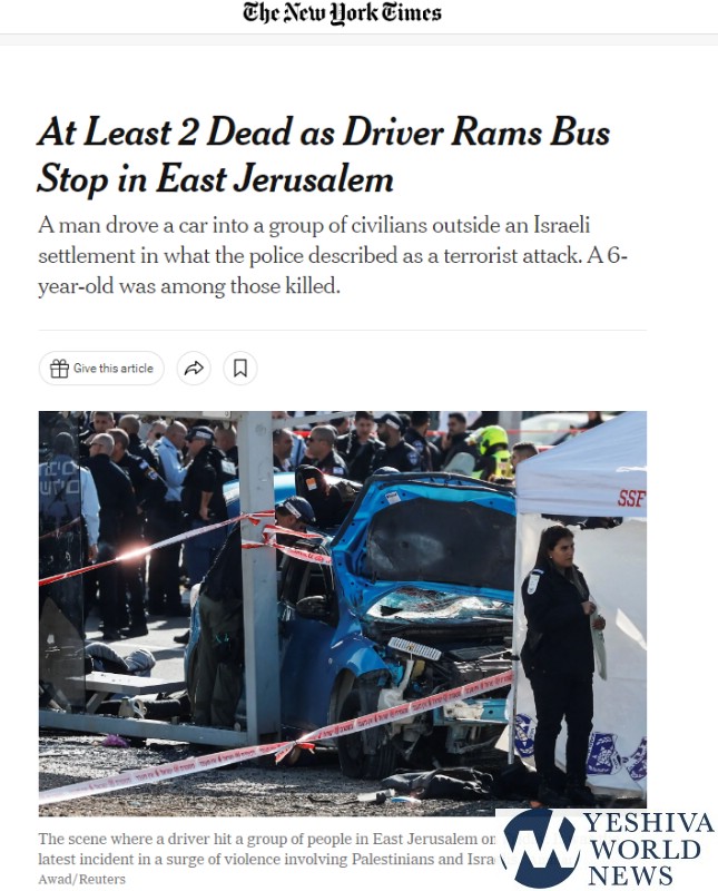 I read the Times article. It reported in the very first sentence that police called the ramming a terrorist attack. Why does YWN allege falsehood about Times reports?