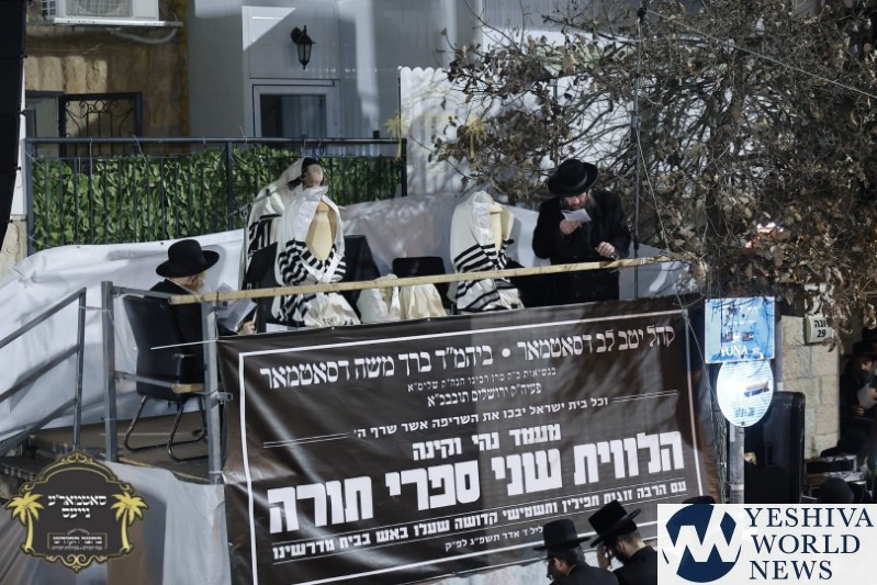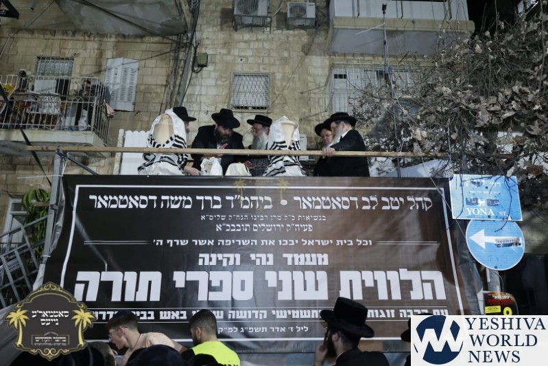נאך בילדער פונעם מסע הלוי’ פאר די געשעדיגטע ספרי תורה וכתבי הקודש ה”י, היינט מאנטאג נאכט אול”י ז’ אדר, פארענט פון בית מדרשינו אויף רח’ יונה בעיה”ק ירושלים ת”ו.