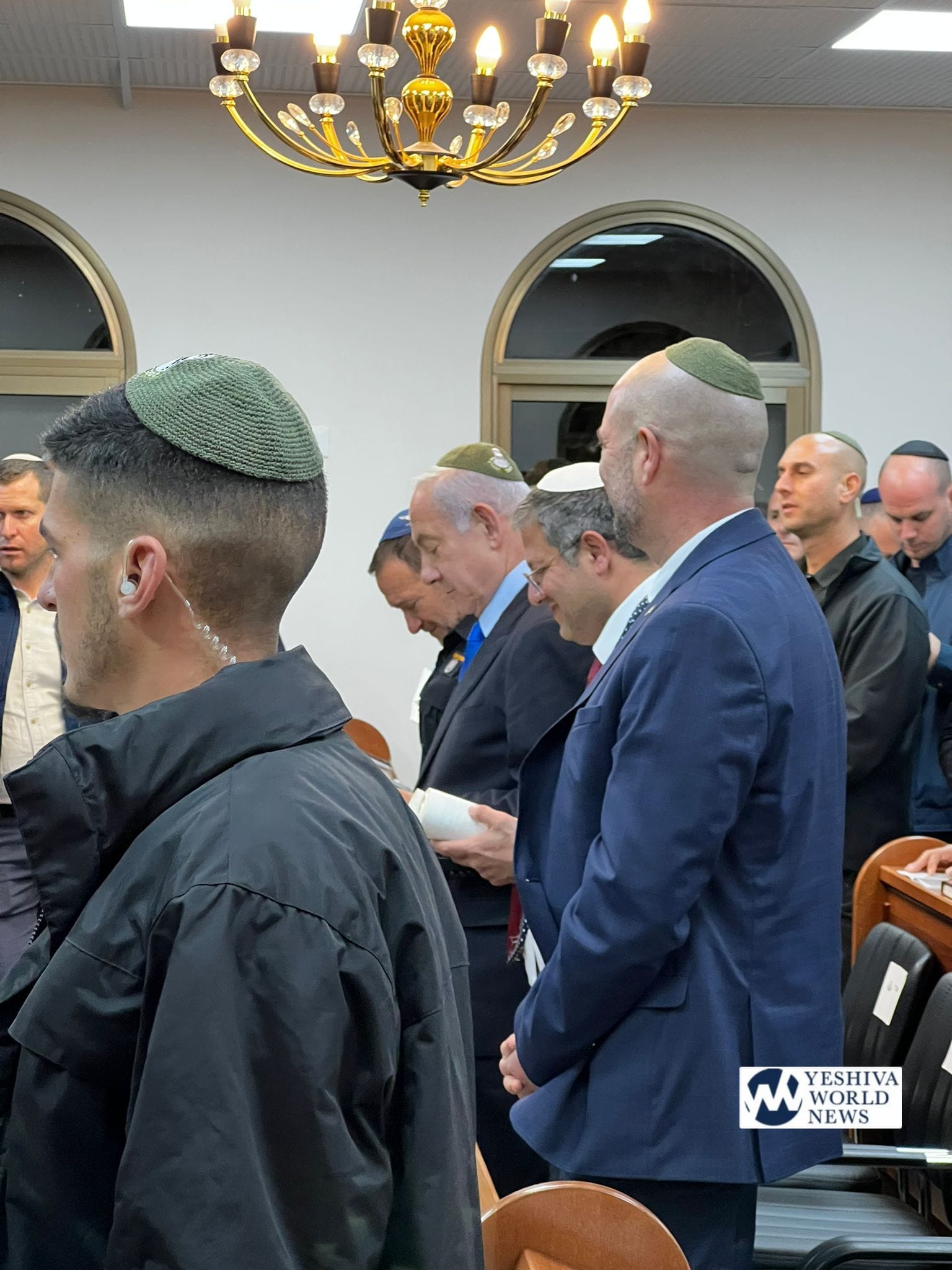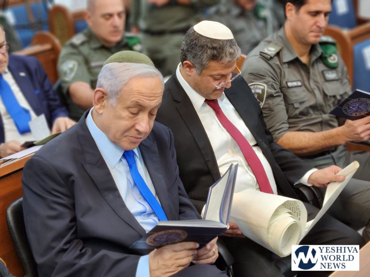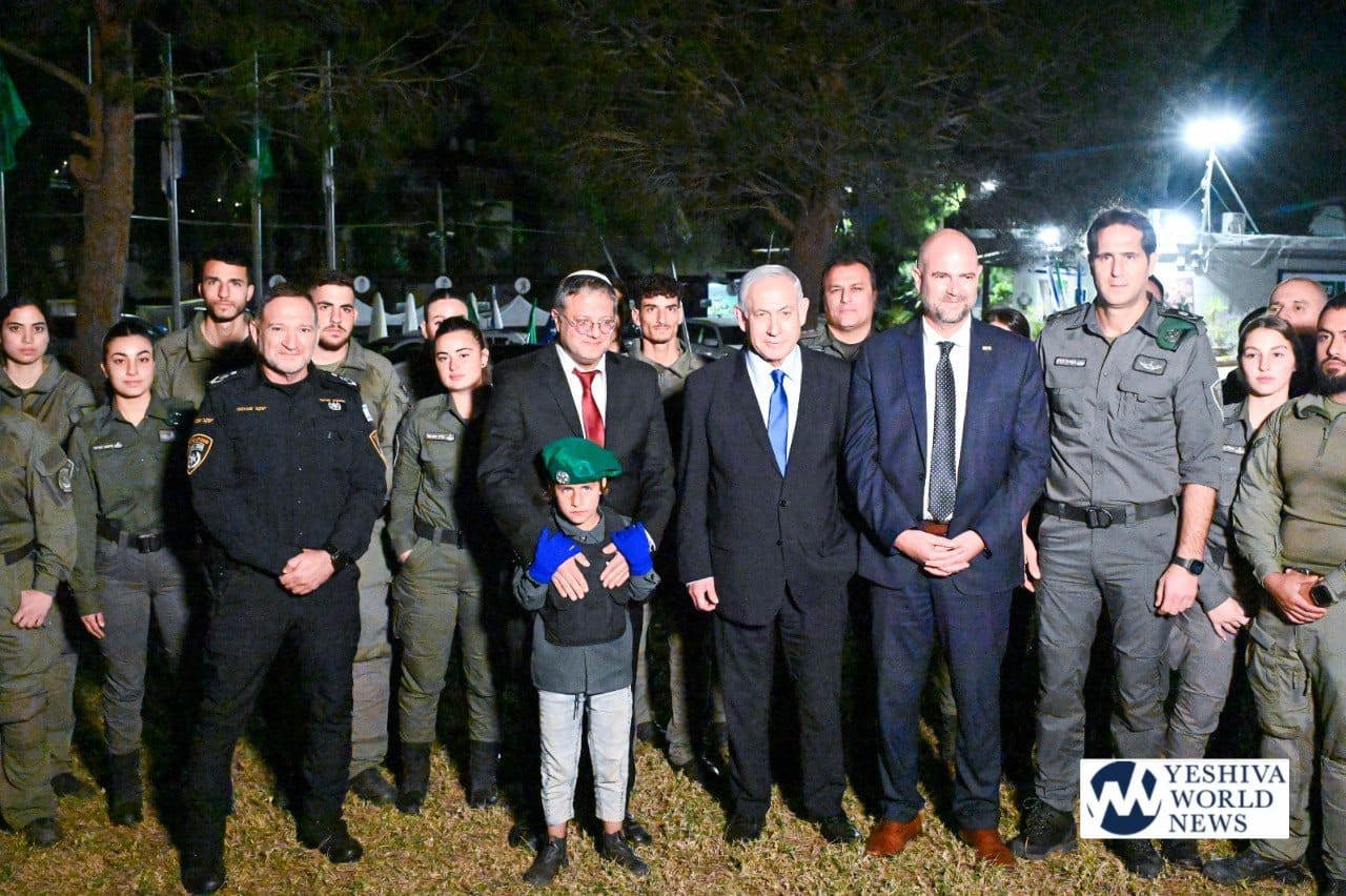 Israeli Prime Minister Binyamin Netanyahu listened to krias megillah on Monday night at the Beit Choron Border Police base, where he was joined by National Security Minister Itamar Ben-Gvir, Knesset Speaker Amir Ohana, Israel Police’s Kobi Shabtai, and Border Patrol officers and brass.