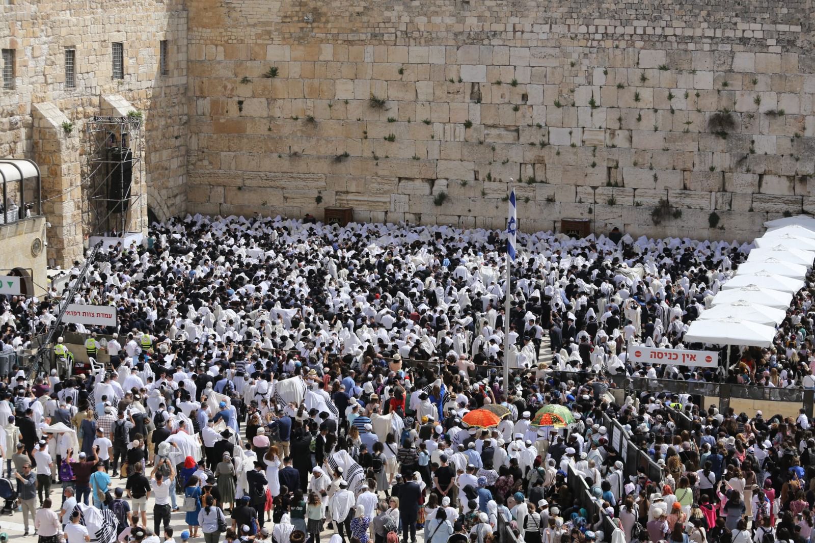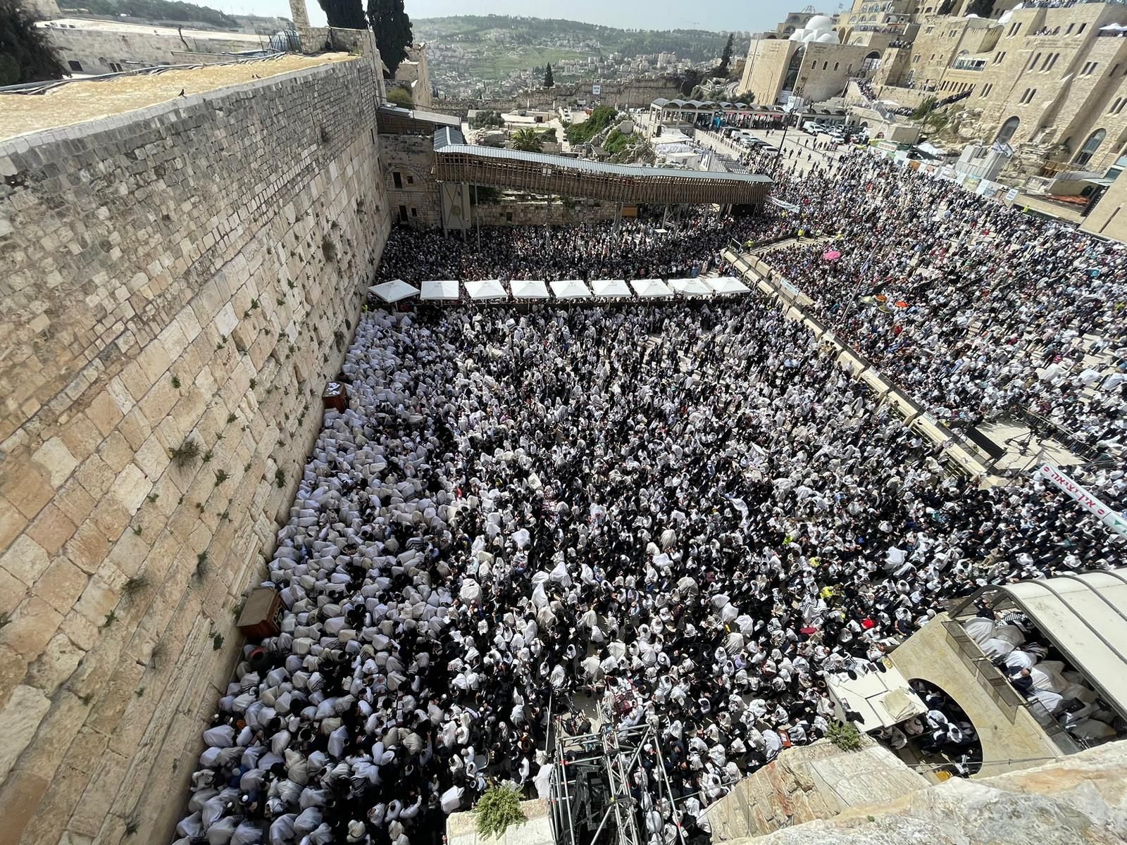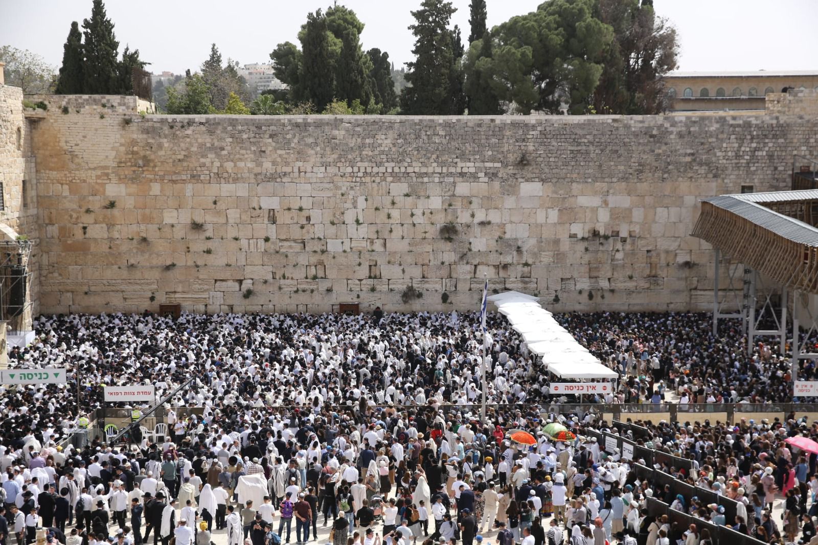 The mass Birchas Kohanim ceremony took place at the Kosel on Sunday morning on Chol Hamoed Pesach in the shadow of the two murderous terror attacks on Friday and the launching of rockets from Syria, Lebanon and the Gaza Strip into Israel.