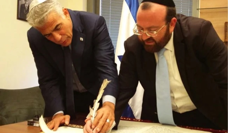 Lapid?! Rav Shteinman ZATZAL said Yimach Shemo about him! What a disgrace that they let him write a letter in this sefer Torah. He’s an atheist! According to Halacha this sefer has to be burned