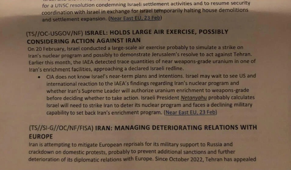 Leaked Pentagon document about Israel.