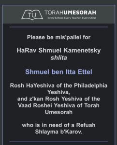 Say Tehillim in the Public Tehillim Group for HaRav Shmuel Kamenetzky Shlit”a: