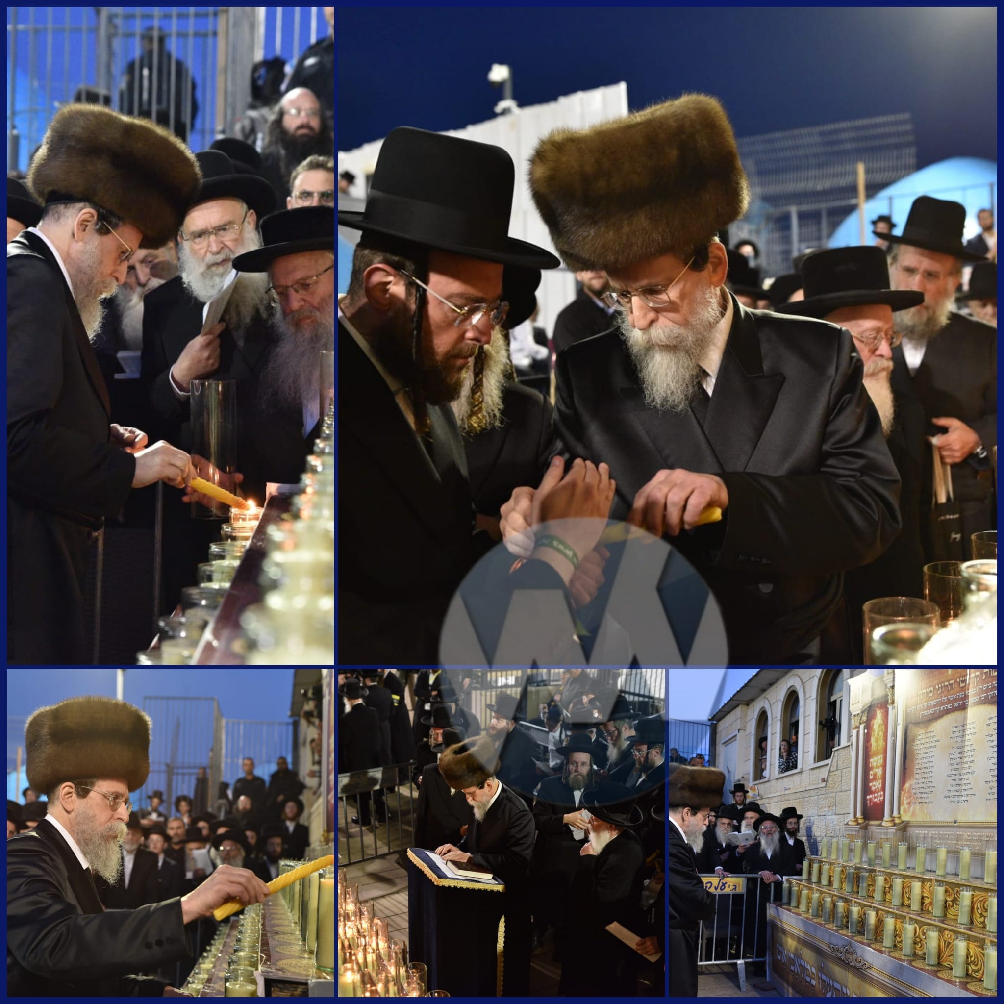 The Boyaoner Rebbe lighting the main Medurah at Kever RASHBI