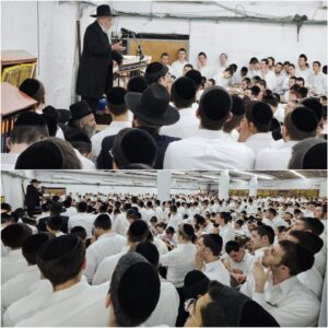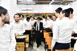 Prior to the shiur, which began at 6 p.m., hundreds of bochurim flocked to the Beis Medrash to hear the shiur. Whoever didn’t fit into the main Beis Medrash, which has about 700 seats, was able to hear the shiur in nearby rooms through an amplification system.