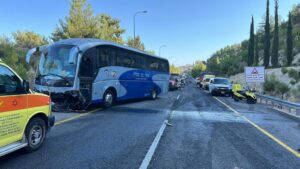 Eight passengers on the bus passengers were lightly injured and were treated at Ziv Hospital in Tzfas.