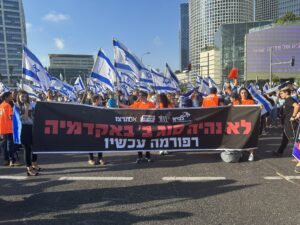Prior to the protest, hundreds of reservists held a march in Tel Aviv condemning IDF refusal.