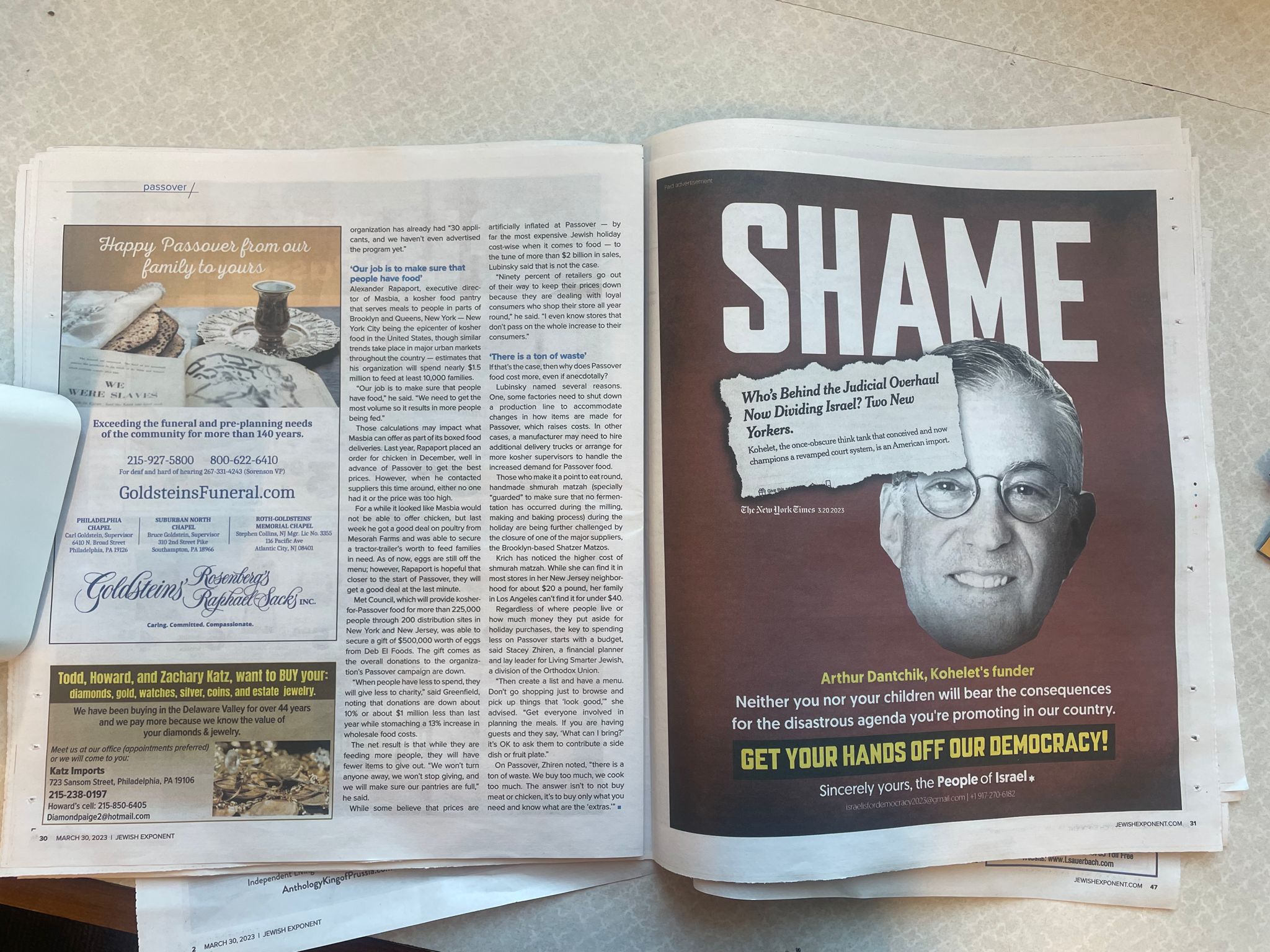 Dantchik, a resident of Philadelphia, is an extremely private person who stays away from the press and never grants interviews. Nevertheless, the leftist bullies publicly shamed him by buying ad space in a Philadelphia-based Jewish newspaper and posting a full-page ad with the word SHAME above a photo of his face. Ironically, the ad, organized by Israeli yordim living in the US, stated: “Neither you nor your children will bear the consequences for the disastrous agenda you’re promoting in our country. Get your hands off our democracy!”