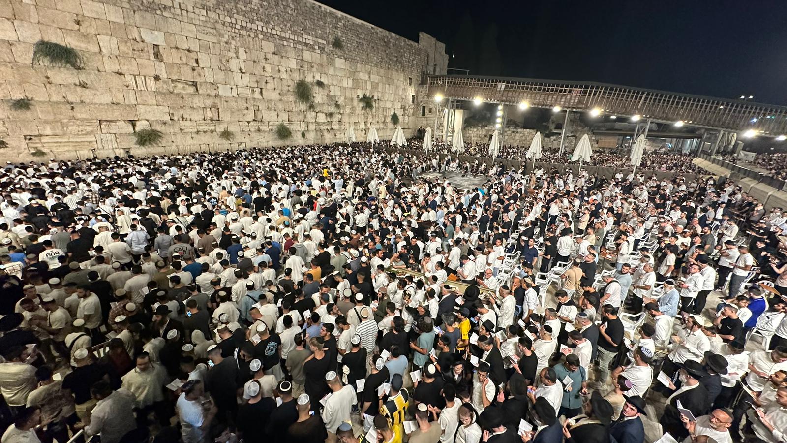 Tens of thousands gathered to begin reciting Selichos on Motzei Shabbos at Chatzos at shuls throughout Eretz Yisrael and at the Kosel.