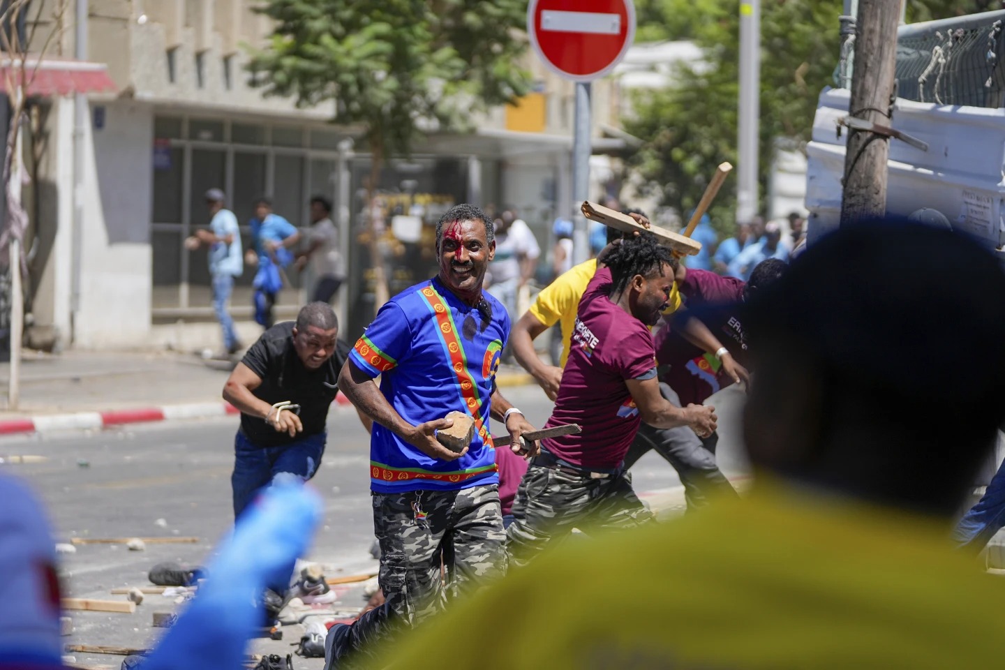 Doctors at Sheba Medical Center in Tel Aviv removed a part of a camping stove from one of the police officers injured in the violent clashes between Eritrean groups in Tel Aviv on Shabbos, Channel 12 News reported.