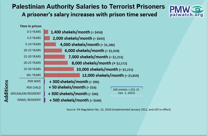 Jabarin is serving a life sentence in an Israeli prison while his family receives a monthly stipend from the PA. The “salary” increases in accordance with the length of the prison sentence.