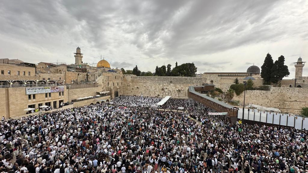 Over 50,000 people flocked to the Kosel on Monday morning, the second day of Chol Hamoed in Eretz Yisrael, for Birchas Kohanim.