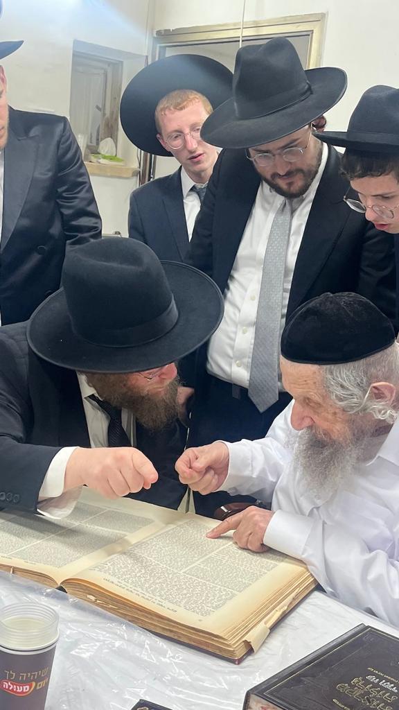 The two Gedolim spoke together for over 20 minutes. Rav Zilberstein told Rav Landau several maasos involving halachic aspects that occurred when he was learning in Slabodka as a bochur, prior to when Rav Landau began learning there.