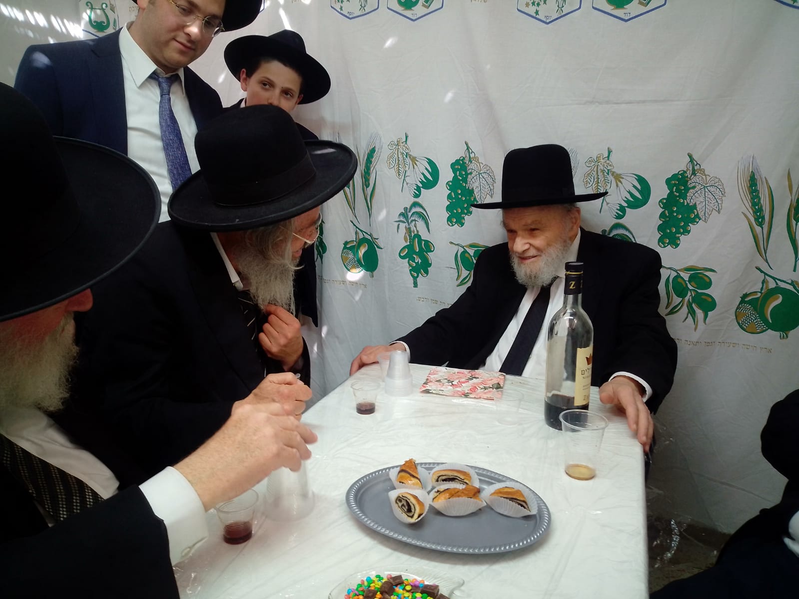 HaGaon HaRav Yitzchak Zilberstein visited the sukkah of Rosh Yeshivas Slabodka, HaGaon HaRav Dov Landau, on Tuesday morning, the third day of Chol Hamoed in Eretz Yisrael.