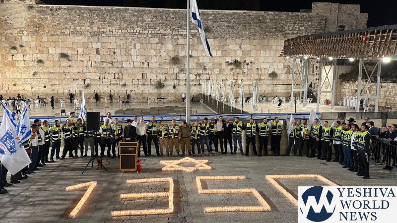 Standing in a semi-circle in the shadow of Klal Yisroel’s greatest tragedy, the Churban Bais Hamikdash, they lit candles formed into the number 1,350 – the amount of innocents murdered by Hamas – and sang “Acheinu,” praying to the Hakadosh Baruch Hu to shield them and all of Klal Yisroel in the face of the ongoing unprecedented threats to their lives.
