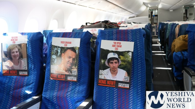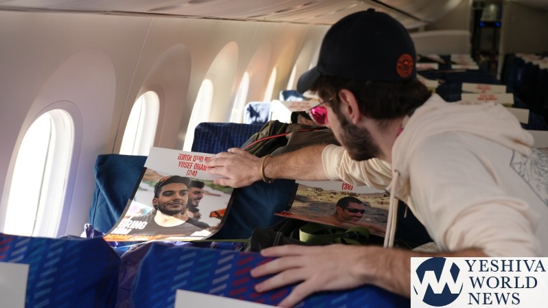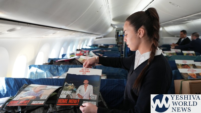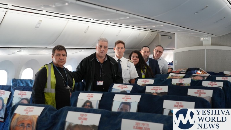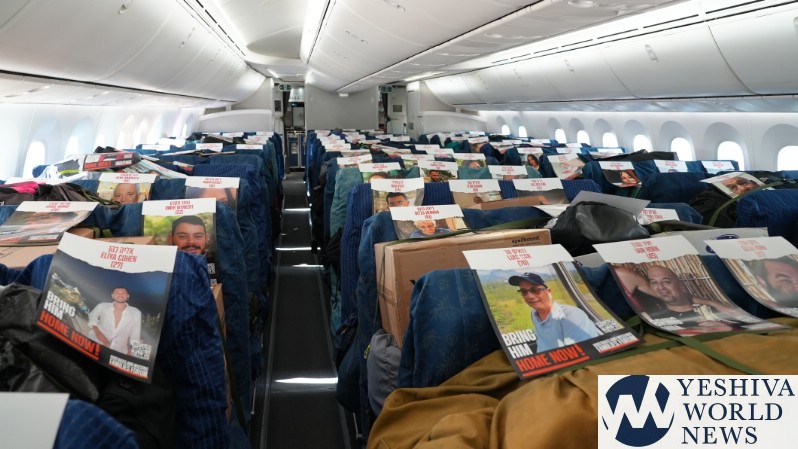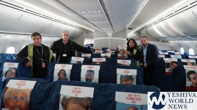 In a moving tribute to the 200+ hostages being held by Hamas terrorists in the Gaza Strip, El Al in partnership with Amudim and Phoenix Insurance placed the photos of the hostages on a cargo flight’s seats – providing a stunning and heartbreaking visual to the world.