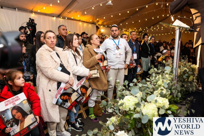 “Our days and our nights are focused in prayer, demanding that your loved ones—our loved ones—come home to you safe and sound, physically and spiritually,” Krinsky said, the crowd of onlookers and family members responding with a resounding amen, a word recited loudly and whispered quietly countless times over the duration of the evening.