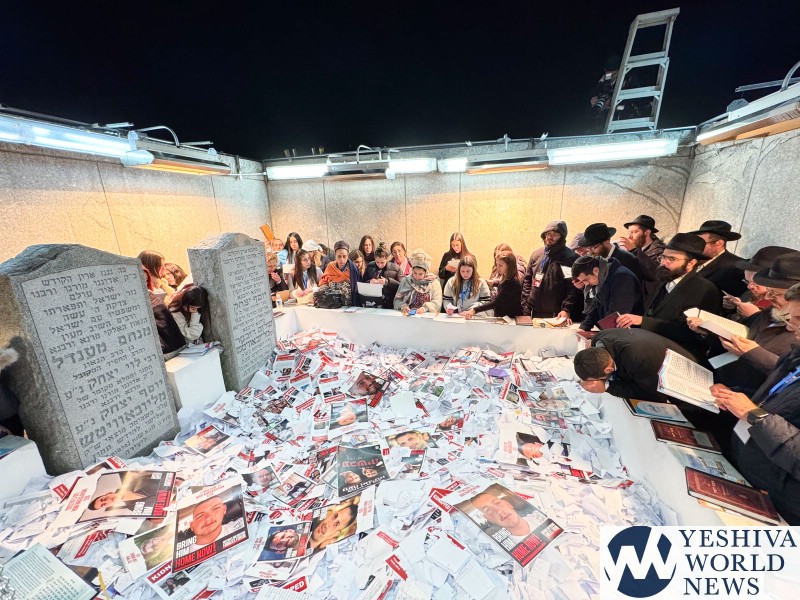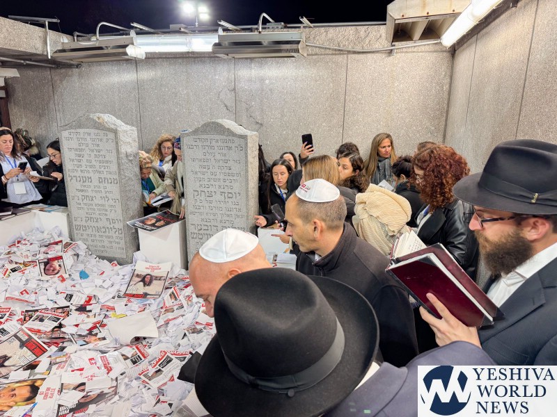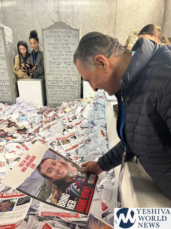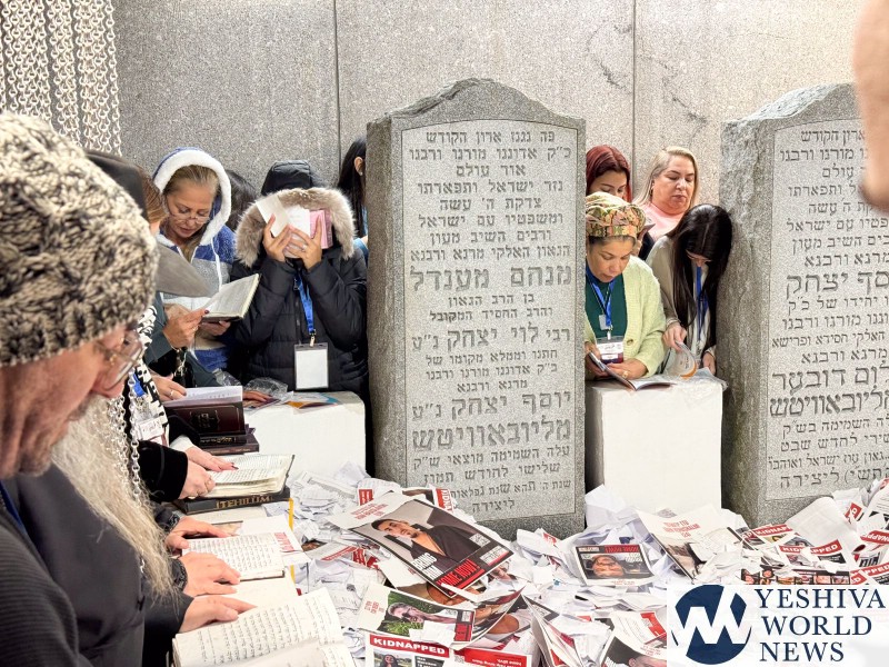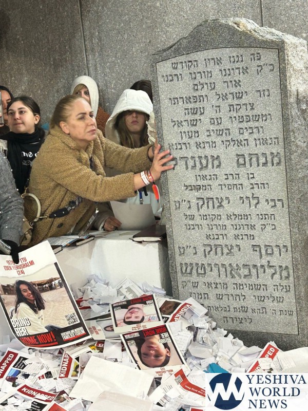 A depth of unimaginable pain and worry can be seen in the eyes of each of the hostage’s family members. They are strong, every one of them, but each has a painful story to tell. Here, two brothers speak of their loving mother snatched out of her home in Be’eri, their father having been killed by terrorists trying to defend her. There, a woman cries out “revealed miracles!” when she hears the name of her relative called out for blessing in the long list emanating from within the Ohel.