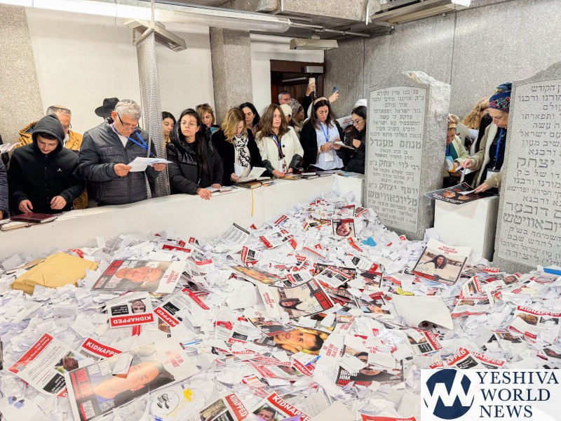 After writing notes bearing their personal prayers, each family member entered the granite mausoleum, many of them bringing photos of their kidnapped loved ones. At the same time, each captive’s name and, per the Jewish custom, their mother’s name, was read out one by one.
